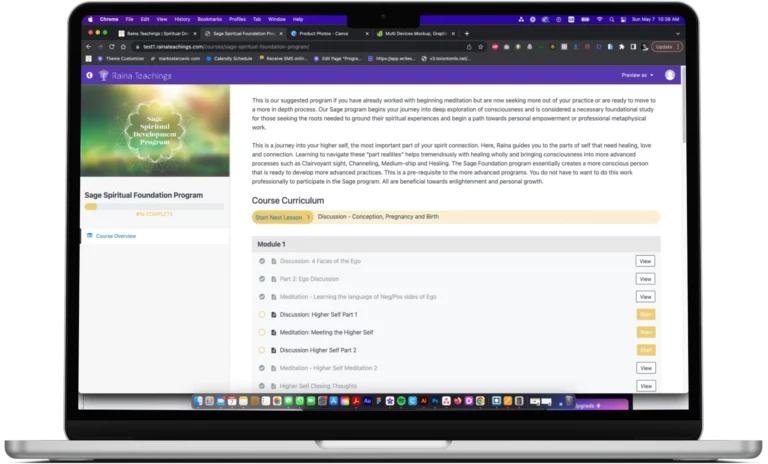 The membership is designed to give you full access to the Raina Teachings Materials.